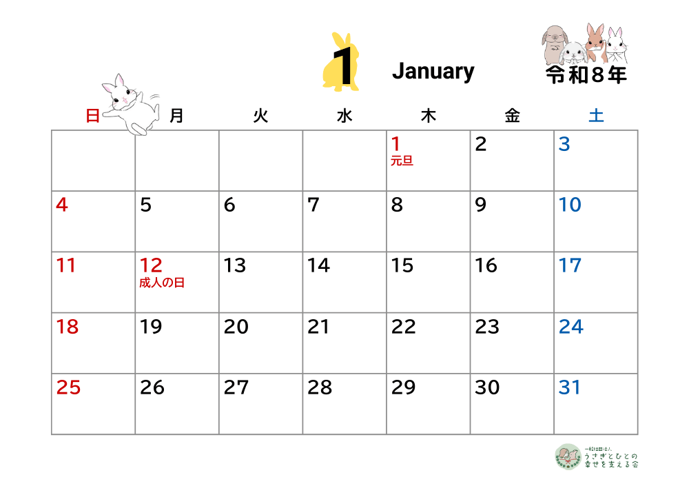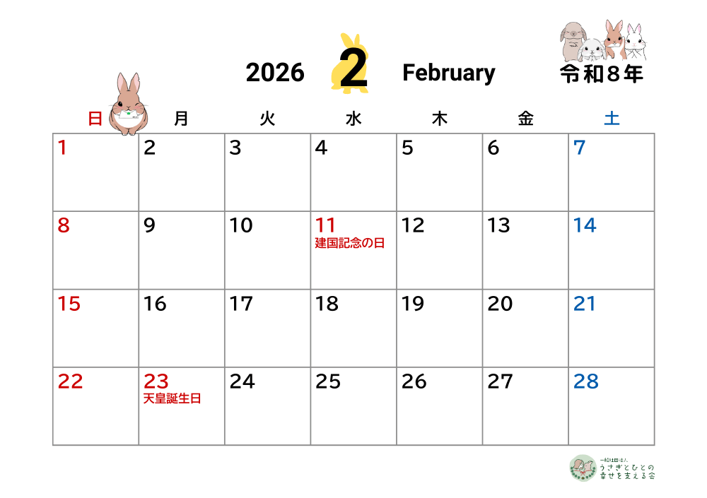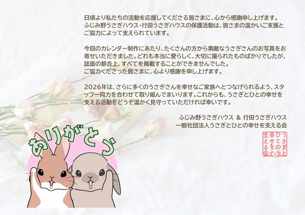ふじみ野うさぎハウスの2026年チャリティーカレンダーが出来ました!(大変お待たせしてすみません…!)